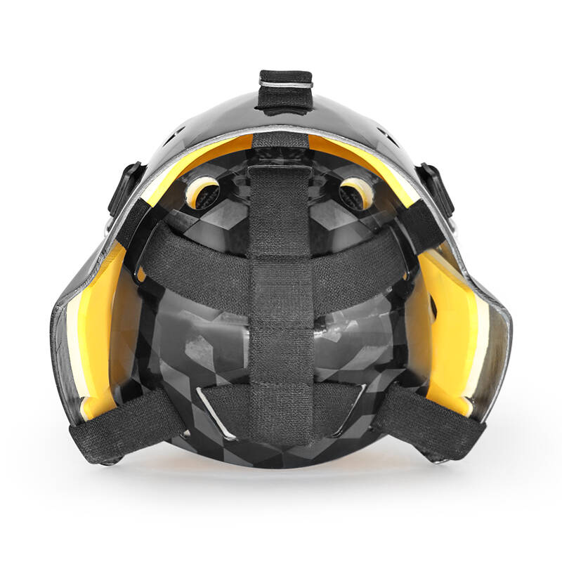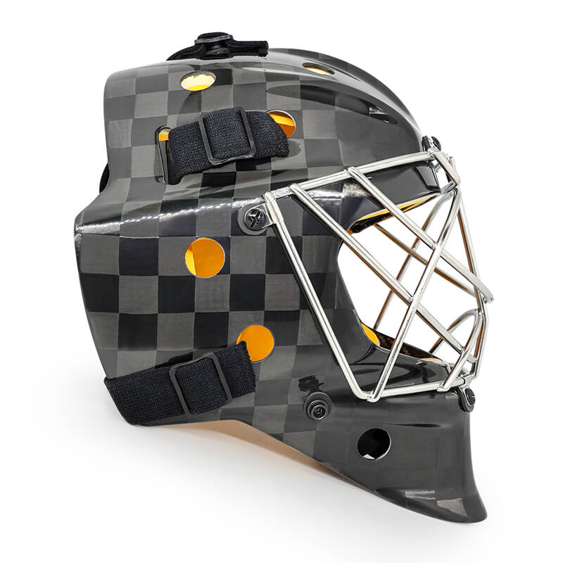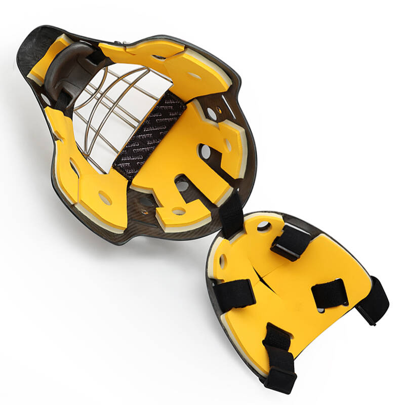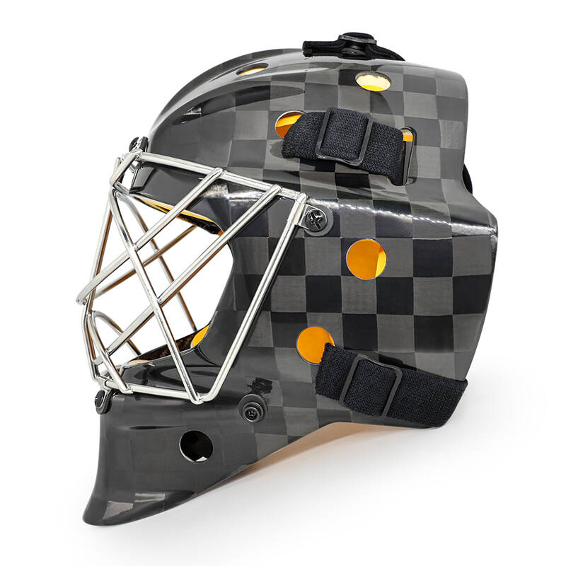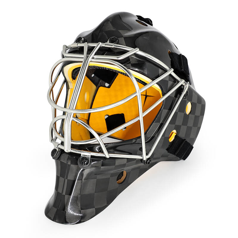 GY-GH8000C-C8 Cat Eyes Carbon Fiber Hockey Goalie kaskoak atezainei segurtasun eta errendimendu ezin hobea eskaintzeko diseinatutako funtzio ugari eskaintzen ditu.