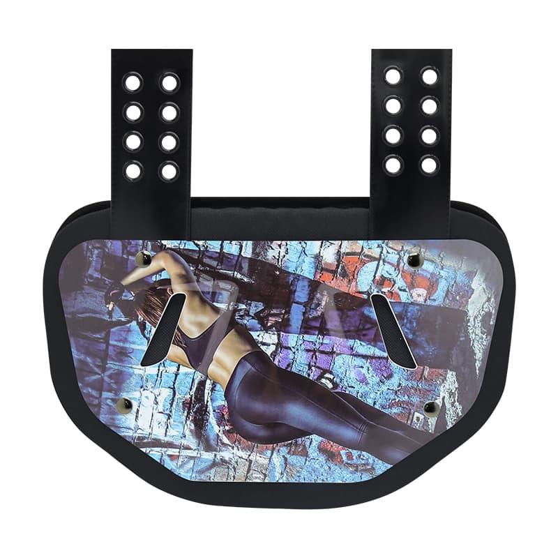 Parrillan segurtasunik handiena lortzeko diseinatuta, gure inpaktuarekiko erresistentea den futbol amerikar atzeko plaka maila guztietako jokalariei bizkarrezurra babesteko konpromisorik gabea eskaintzen die, gazteen futboletik hasi eta institutu, unibertsitate eta helduen ligetara. Futboleko babes-tresna garrantzitsu honek inpaktu handiko kolpeak xurgatu eta barreiatzen ditu, talka bizietan zure bizkarra babestuz.